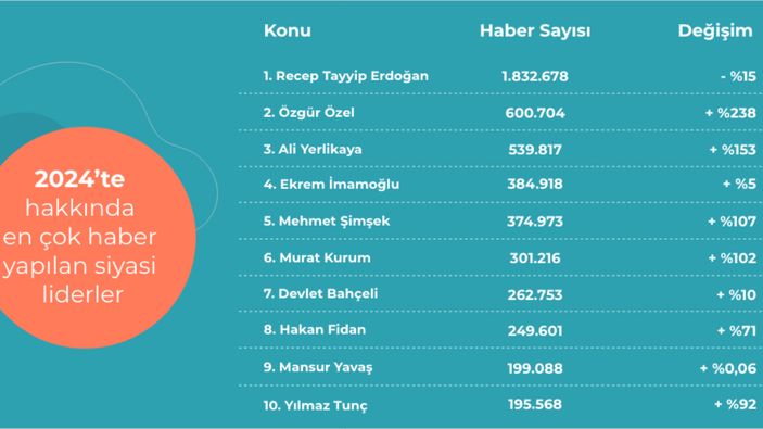 2024’TE HAKKINDA EN ÇOK HABER YAPILAN SİYASİ LİDERLER DE BELİRLENDİ