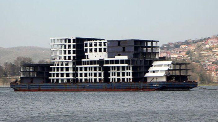 Panama bayraklı çelik platform taşıyan römorkör, Karadeniz'den İstanbul Boğazı'na giriş yaptı. Apartmana benzetilen römorkör, İtalya'ya gitmek üzere ilerledi.