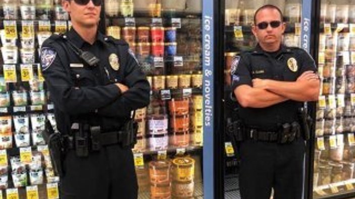 İki polis memurunun bir süpermarketin dondurma reyonunun önünde çekildikleri fotoğrafı paylaşan Teksas polis departmanı, olası bir “marketteki dondurmaları yalama” akımına karşı görev başındayız mesajı verdi.