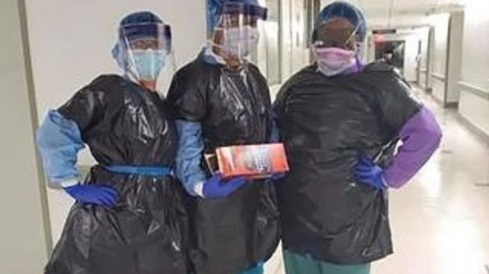 ABD'de koronavirüs salgını nedeniyle önlükleri tükenen bazı hemşireler, çöp poşetlerinden yaptıkları önlükleri giydi. İngiltere'de de benzer durum yaşandı.
