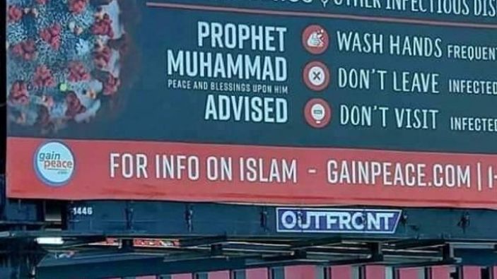 Çin'de ortaya çıkan ve tüm dünyayı etkisi altına alan koronavirüs salgınının merkez üssü ABD'de, Hz. Muhammed'in salgın hastalıklar hakkındaki hadisleri reklam panolarında yayınlandı.