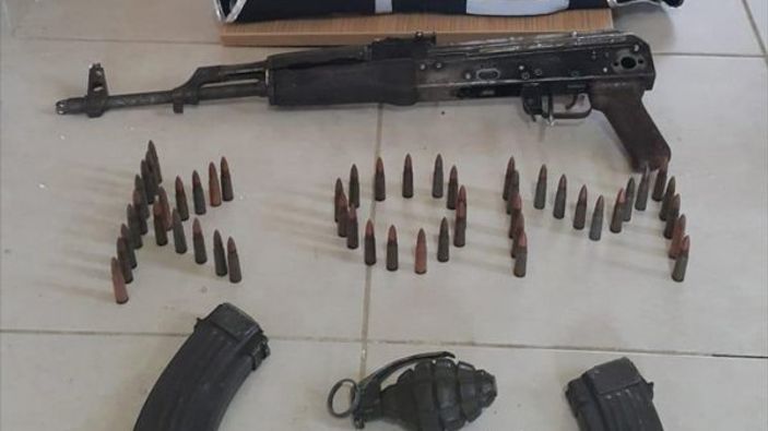 Polis ekipler,, adreste yaptığı aramada kalaşnikof, iki şarjör ve 50 mermi ile parça tesirli el bombası buldu.