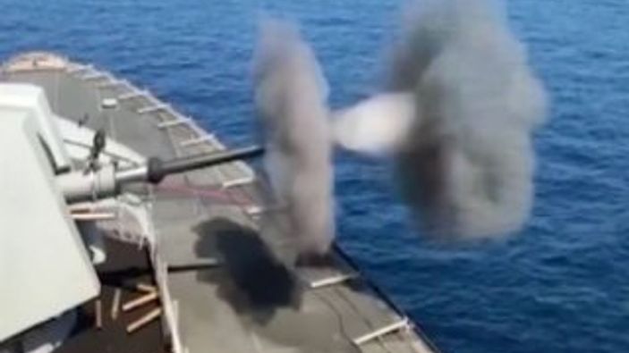 Milli Savunma Bakanlığı, Ağ Destekli Veri Entegre ’Savaş Yönetim Sistemi ADVENT’ ile TCG Kınalıada gemisinden ilk fiili silah atışlarının görüntüsünü paylaştı.