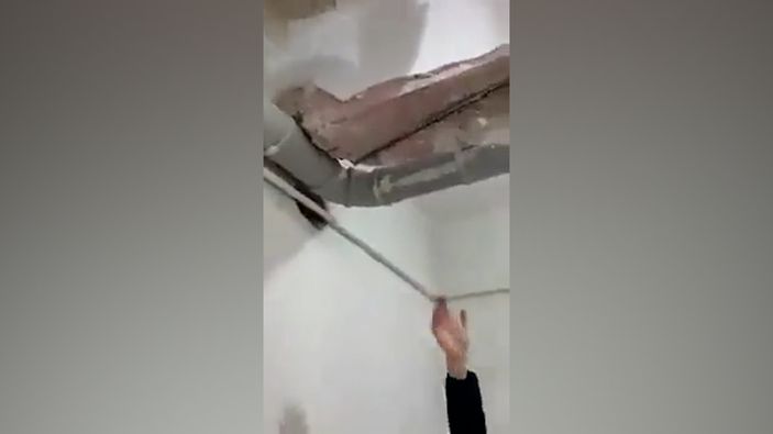 Bir görevli tarafından kaydedilen görüntülerde, gider borusunun kirişin ortasından geçtiği görüldü.