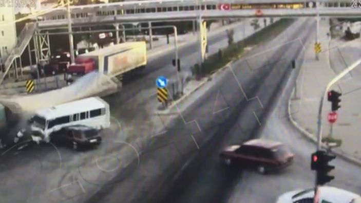 4 kişinin yaralandığı kazanın ortaya çıkan güvenlik kamera görüntüleri ise tır sürücüsünün ışık ihlali yaptığını gözler önüne sererken, çarpma anında ise minibüsü savrulup yanındaki otomobile çarpması anbean kameralar tarafından kayıt altına alındı.