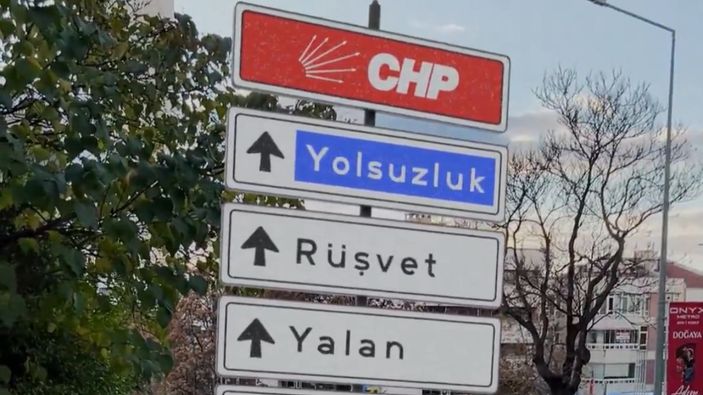 AK Parti Gençlik Kolları Başkanı Yusuf İbiş'in sosyal medya hesabından yayınladığı videoda, Kızılay'daki popüler tabelaya atıfta bulunularak CHP içinde yaşanan çeşitli usulsüzlüklere dikkat çekildi.