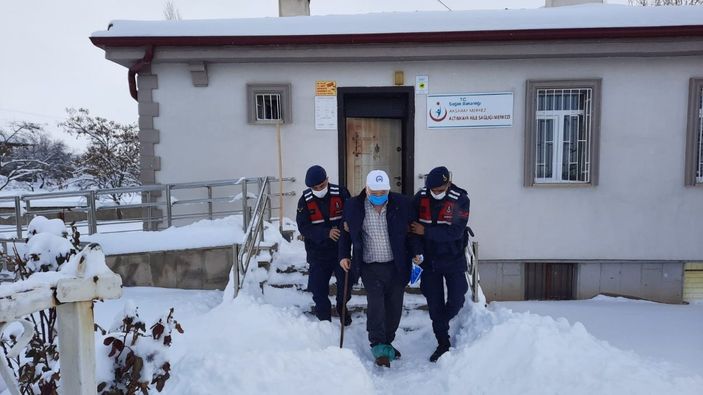 Olumsuz hava koşulları nedeniyle şehirde kapanan köy yollarında mahsur kalan ve hasta olan vatandaşların tüm eksiklikleri, jandarma tarafından gideriliyor.