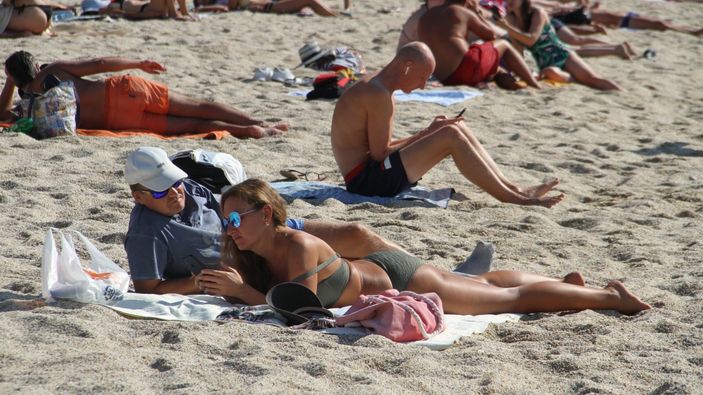 Bazı turistler ise kumlara kendilerini atıp güneşlenirken müzik dinleyerek kitap okudu. Sahilde yürüyen çiftler, deniz yataklarıyla açılarak güneşlenen turistler ve kumsalda oynayan küçük çocuklar ise renkli görüntüler oluşturdu.