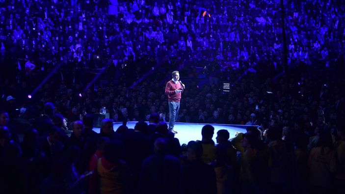 "Ne yapacağımızı teker teker burada anlatmaya kalksam; 22 eylem planının sadece ismini saymak bile epey bir vaktimizi alır. İsterseniz madde madde bütün eylemleri okuyayım. Sabaha kadar burada kalmaya razıysanız tabii ki. Kısaca ifade etmek gerekirse, bu 22 eylem planı 3 taşıyıcı sütun üzerine oturmuş durumda. Güçlü, sürdürülebilir ve kapsayıcı ekonomi, özgür, güçlü ve mutlu bir toplum, kaliteli kamu yönetimi, saygın ülke. Özetin özeti bu. Çok net iddia ediyorum. Cumhuriyet tarihinde böylesine hazır bir siyasi program olmadı. Bu çalışmalarda kimlerin emeği var biliyor musunuz? Ülkemizdeki çok kıymetli akademisyenlerin, hukukçuların, ekonomistlerin, araştırmacıların, çevrecilerin, eğitimcilerin, sağlıkçıların, şehir planlamacıların, çiftçilerin, girişimcilerin, esnafın, binlerce kişinin emeği var. Politika birimlerimize destek veren, canla başla çalışan isimlerin bir kısmı, şu anda bu salonda."