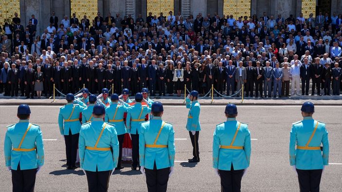 Törenin ardından MHP Lideri Devlet Bahçeli ile Kemal Kılıçdaroğlu'nun kısa sohbeti de kameralara yansıdı.