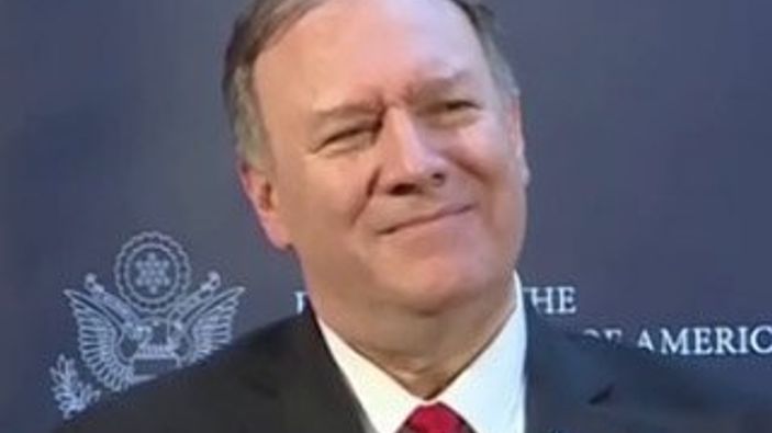 ABD Başkan Yardımcısı Mike Pence tarafından açıklanan kararlar sırasında Dışişleri Bakanı Mike Pompeo'nun, neşeli olduğu görüldü.