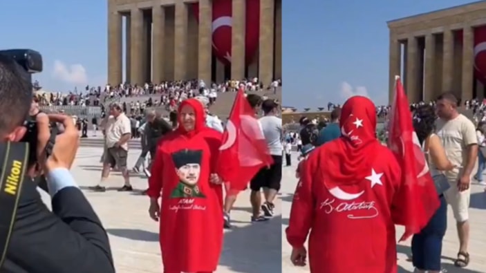 Anıtkabir'e gelenler arasında üzerinde ay-yıldızlı başörtü Atatürk fotoğraflı elbiseyle dolaşan bir kadının da olması çok konuşuldu.
