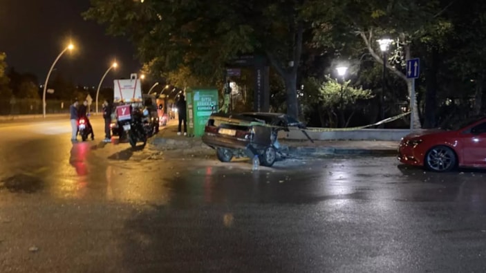 Çankaya'da meydana gelen kaza akıllarda durgunluk yarattı. Ağaca çarparak ikiye bölünen aracın yarısı karşı şeride geçti.