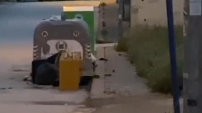 Yiyecek arama yarışına çıkan farelerin çöp konteyneri etrafından dolaştığını gören vatandaşlar şaşkına döndü.