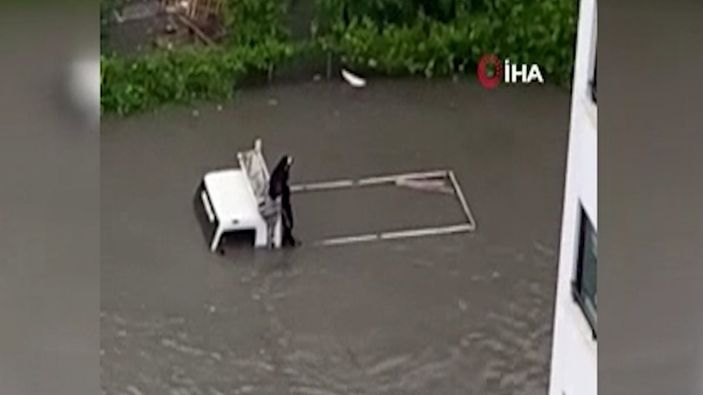 Bazı araçlar suya gömülerek mahsur kaldı. Sürücülerden bazıları, su içinde kalan araçlarını iterek kurtarmaya çalıştı. Yer yer dolu yağışı da etkili oldu.