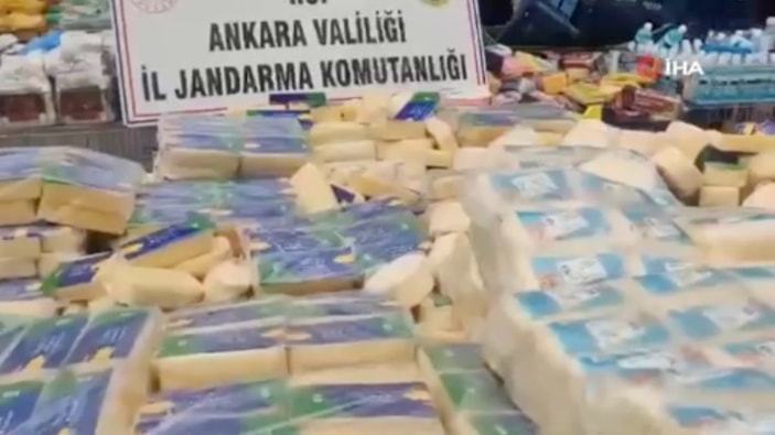 Operasyonda çoğu küflenmiş, bozulmuş ve zorunlu etiket bilgileri bulunmayan 6 bin 889 kilogram kaşar peyniri, bin 575 kilogram bitkisel margarin ve 257 kilogram sucuk bulundu.