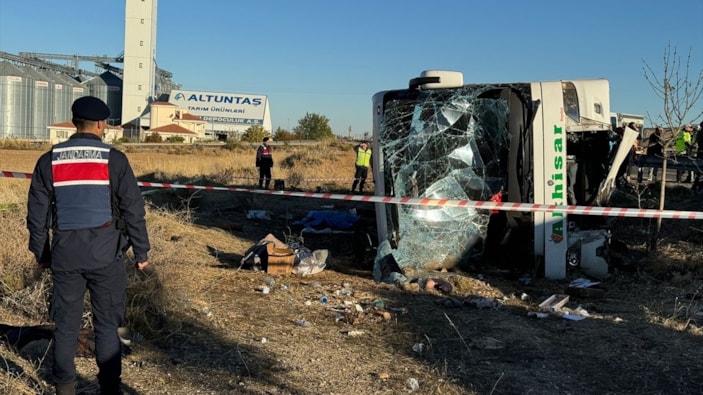 Balıkesir'den Nevşehir'e giden yolcu otobüsü, sürücüsünün kontrolünü kaybetmesi sonucu devrildi.