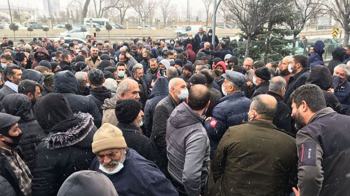 Bu arada, özel halk otobüsü ile minibüsçüler esnafı yaklaşık 200 kişi, Ankara Büyükşehir Belediye binası önünde toplandı. 'Esnaf burada, Mansur nerede?' sloganları atan grup, artan akaryakıt fiyatlarına rağmen toplu ulaşım biniş ücretlerine zam yapılmamasına tepki gösterdi.