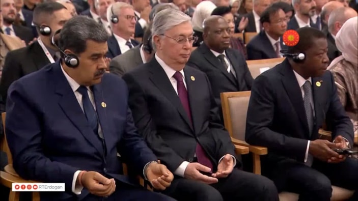Törene katılan Venezuela Devlet Başkanı Nicolas Maduro da o sırada el açıp duaya eşlik etti.