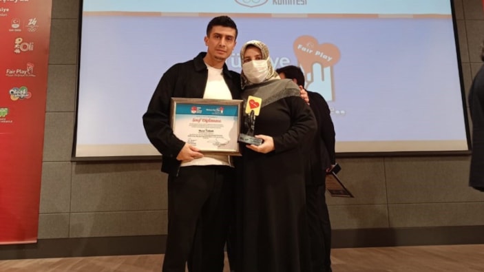 Diplomada “Kendisine yapılan transfer teklifini reddederek kariyerini sonlandırıp siroz hastalığıyla mücadele eden annesine donör olmayı tercih ederek Fair Play ruhuna yakışan bir hareket sergilemesi nedeniyle sayın Murat Turan’a Sportif Davranış Dalı’nda, Türkiye Milli Olimpiyat Komitesi 2023 Yılı Fair Play Şeref Diploması Ödülü’ne layık görülmüştür” yazısı yer aldı.
