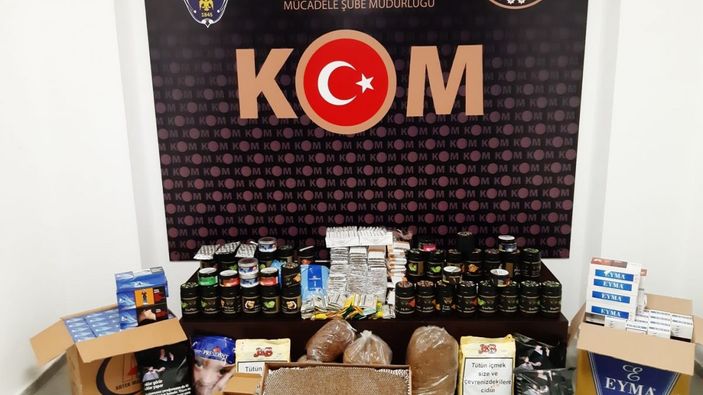 Aramalarda 2 bin 817 parfüm,10 bin 840 makarona basılmış sigara, 19 bin 600 boş makaron,190 mükerrer kullanım amacıyla biriktirilen orijinal TAPDK bandrolü,55 kilogram nargile tütünü,25 kilogram tütün ele geçirildi.