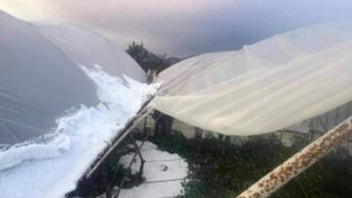 Seraların üzerinde bulunan plastikler ise parçalandı. Öte yandan dolu, mahallede bulunan buğday ve karpuz tarlalarına da zarar verdi.