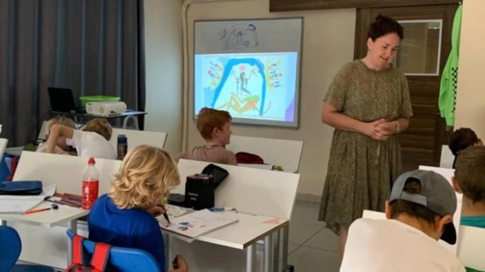 Kaçak eğitim-öğretim faaliyetinin başladığına dair fotoğraf ve videolarda, Rusça 'Türk okulları 9 Eylül'de kapı açar, ama bizde çocuklar bizim Co-kids-working'e gelerek online eğitime geçti.' ifadeleri yer aldı.