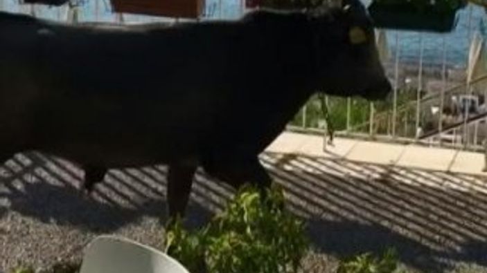 Antalya'da kesime götürülen kurbanlık dana sahile kaçtı ViDEO