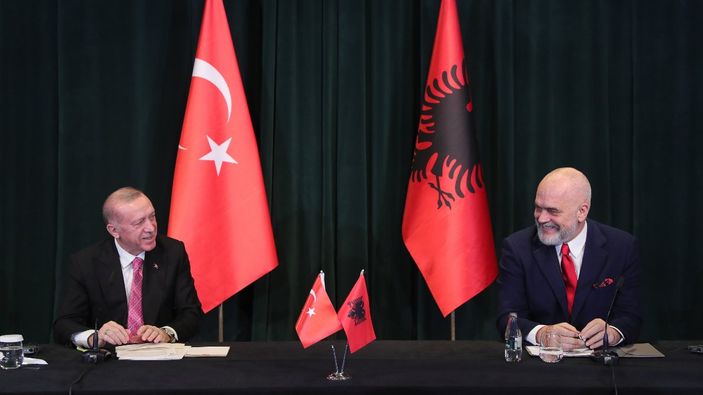 Arnavutluk Başbakanı Edi Rama, resmi ziyaret kapsamında Arnavutluk’ta bulunan Cumhurbaşkanı Recep Tayyip Erdoğan ile yaptığı baş başa ve heyetler arası görüşmelerin ardından ortak basın toplantısı düzenledi.