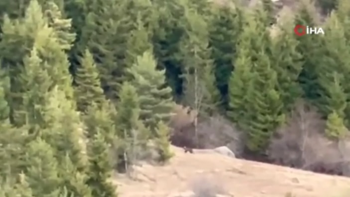 Ancak gençlerin bu yüksek sesli çağrısı ayıyı korkuttu ve kısa bir duraksamanın ardından hızla ormanın derinliklerine doğru kaçtı.
