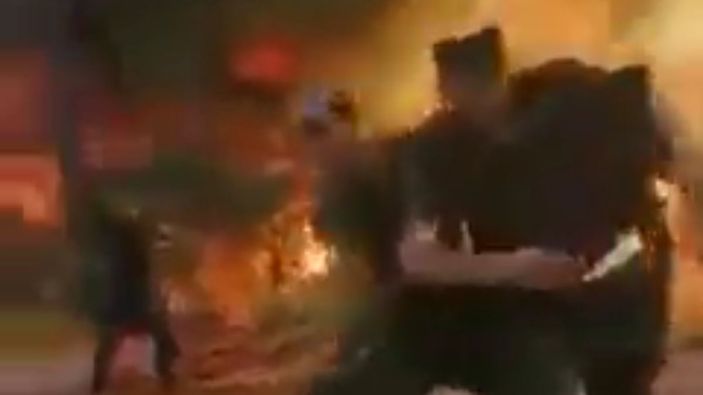 Canlarını hiçe sayan arkadaşları, onu kurtarmak için alevlerin arasına koştu.