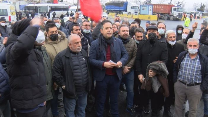 Aras, "Bugün burada Ambarlı Liman girişinde haksız yere alınan liman giriş pulunu protesto etmektir. Türkiye'de toplam 27 liman vardır. İrili ufaklı bütün limanları hesapladığınız zaman 180 adet liman bulunmaktadır. Bu limanların hiçbirinde nakliyeciler için giriş ücreti alınmamaktadır. Ambarlı'daki 4 tane limanın birleşip kurmuş oldukları şirket, 15 yıldan beri burada emek veren burada iş yapan arkadaşlarımızın, firmalarımızın yılda 2 bin 650 lira ücret talep etmektedir. Son 3 ayda akaryakıt, yedek parça masraflarımız yüzde 100'den fazla artmıştır. Sırtımızdaki yük her geçen gün artmaktadır. Bizler Türkiye'nin ithalat ve ihracatına katkı sağlayan esnaflarız ve bu alınan haksız ücretin kaldırılmasını istiyoruz. Haklı davamızda sonuç alana kadar protesto gösterilerimize devam edeceğiz." dedi.