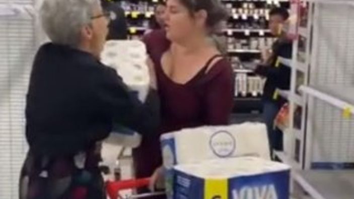Koronavirüsün dalga dalga yayıldığı ülkelerden Avustralya'da kadınlar markette birbirine girdi.