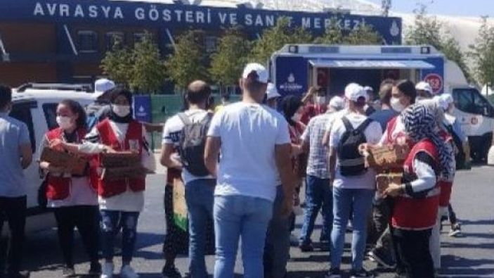 Dev ekranlardan Ayasofya'da verilen Kur'an-ı Kerim tilaveti de gösterilen alanda, Türkiye'nin çeşitli illerinden gelenler için Türk Kızılayı tarafından ikramlarda bulunuldu.