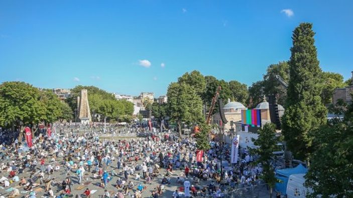 "Değerli Misafirlerimiz, Ayasofya Camii çevresinde belirlenen namaz kılma alanlarımızın tamamı doldu.