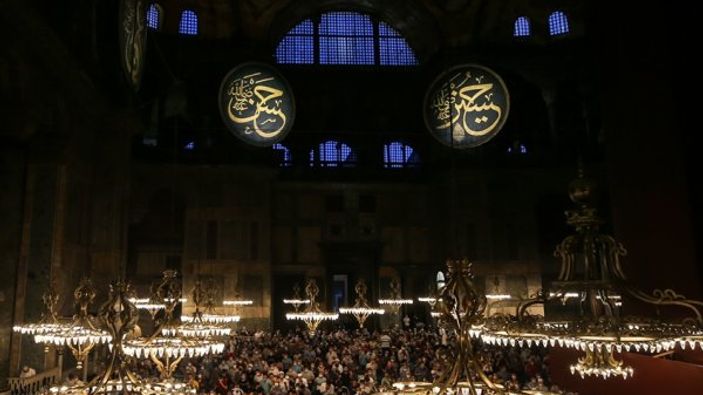 Tüm gece boyu binlerce kişiyi ağırlayan Ayasofya-i Kebir Cami-i Şerifi Cumhurbaşkanı Recep Tayyip Erdoğan'ın talimatıyla 24 saat ibadete açık olacak.