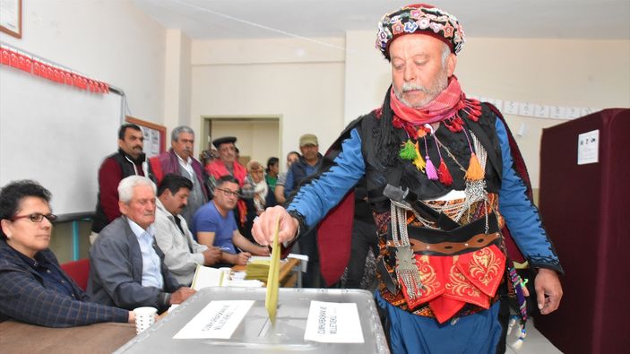 Efe kıyafetleriyle açıklamalarda bulunan Mehmet Sarı, "Biz Yörük ve efe torunları olarak milli kıyafetlerimizle oylarımızı kullandık, tercihlerimizi yaptık. Vatanımıza ve milletimize hayırlı uğurlu olsun." ifadesini kullandı.