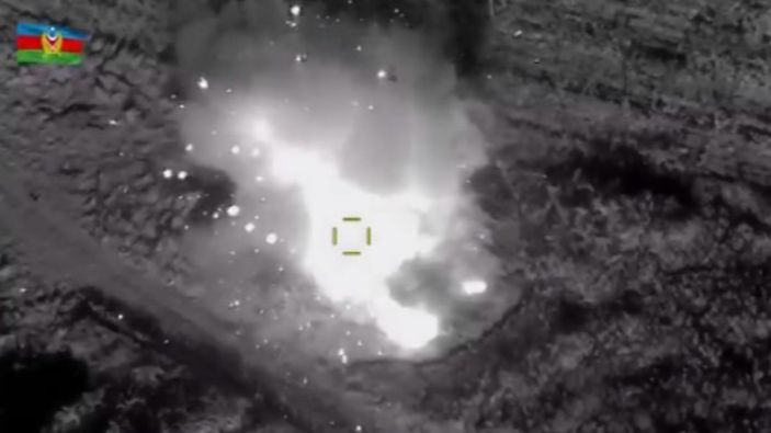 Azerbaycan Savunma Bakanlığı, Ermeni hedeflerinin vurulduğu anlara ilişkin yeni görüntüler yayınladı.