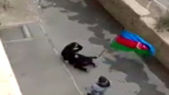 Dağlık Karabağ’ın kalbi Şuşa’nın Ermenistan işgalinden kurtarılmasını kutlayan bir grup Azerbaycanlı genç, yolda karşıladıkları bir şehit annesinin ayağını öptü.