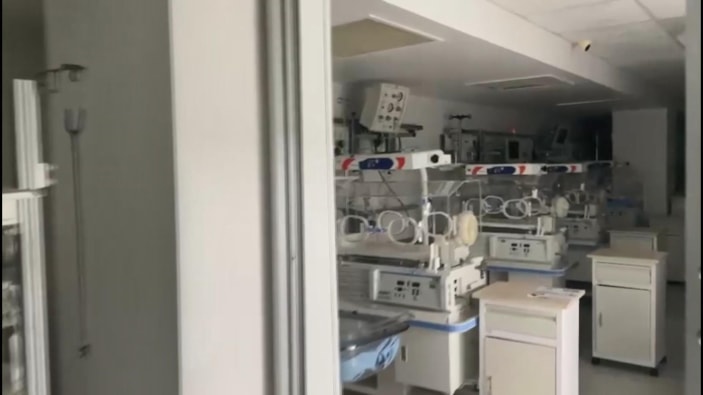 Görüntülerde; özel hastanenin bebek yoğun bakım ünitesindeki kuvözler görülüyor.