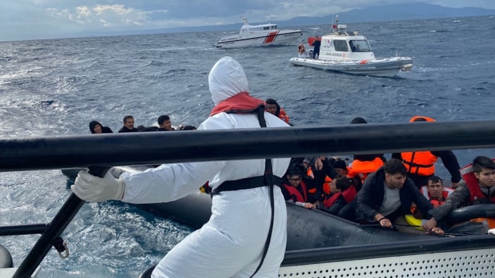 Balıkesir Ayvalık açıklarında yasa dışı yollardan Yunanistan’ın Midilli Adası’na gitmeye çalışırken geri itilen 45 düzensiz göçmen kurtarılarak Balıkesir İl Göç İdaresi'ne gönderildi.