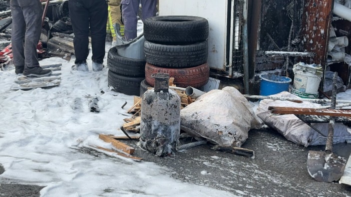 İstanbul’un Başakşehir ilçesinde 3 katlı binanın girişindeki bir lastik dükkanında ısınmak için soba yakıldı.