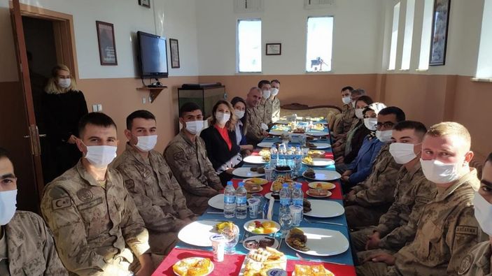 Batman Valisi Hulusi Şahin'in eşi Ebru Şahin, 'gönül elçisi' anneler ile birlikte hazırladıkları yemekleri, üs bölgelerinde görev yapan askerlere götürdü.