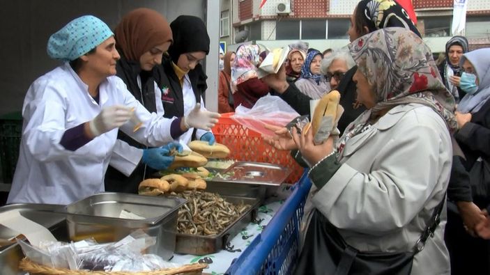Kapalı Pazar Alanı'nda düzenlenen etkinlikte, yaklaşık 10 bin kişiye ekmek arası hamsi ikram edildi.