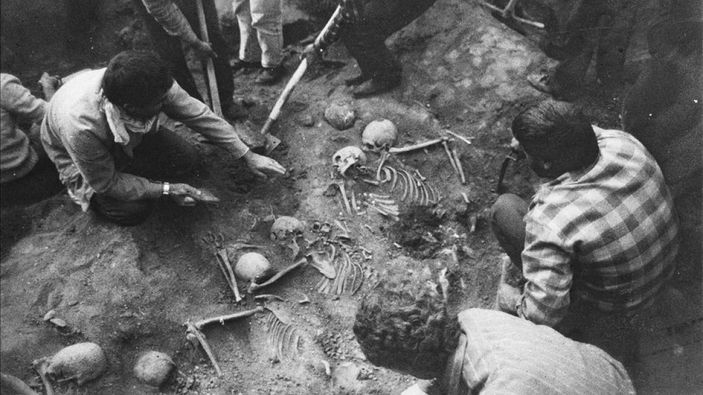 7 Temmuz 1993'teki kazıda Erzurum'un Pasinler ilçesindeki Tımarlı köyünde Ermeni katliamına uğrayan Türkler'e ait kemikler görülüyor.