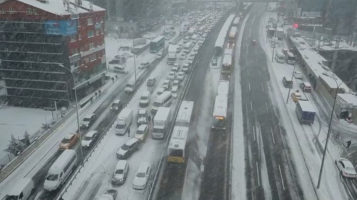 Beylikdüzü E-5'te trafiğe kar engeli
