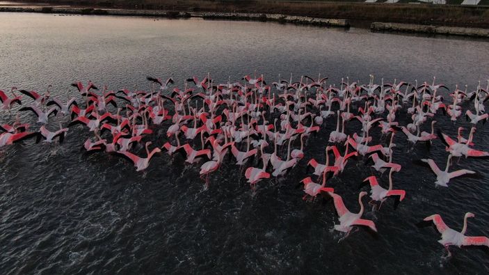 Leylek familyasından olan flamingolar insanlara yakın yerlerde görüntüleniyor. Bu kuşların renkleri beslendikleri yiyeceklerdeki karotin miktarı ile ilişkilidir. Suda avladıkları yengeç, karides ve artemia gibi besinlerde karotin maddesi bulunmaktadır.