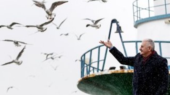 AK Parti İstanbul Büyükşehir Belediye Başkan Adayı Binali Yıldırım, martılara da simit attı.