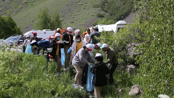 Çöp torbası ve eldivenlerin dağıtılmasının ardından Bitlis Çevre, Şehir ve İklim Değişikliği Müdürlüğü ile Doğa Koruma ve Milli Parklar Şube Müdürlüğü personeli, Nemrut Jeopark Şirketi çalışanları, sivil toplum kuruluşu üyeleri, öğrenciler ve öğretmenler Nemrut Kalderası'nda çöp topladı.