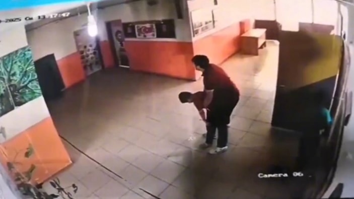 Güroymak ilçesinde boğazına yabancı cisim kaçan öğrenci, öğretmeninin Heimlich manevrasıyla hayata tutundu. O anlar güvenlik kamerasına yansıdı.
